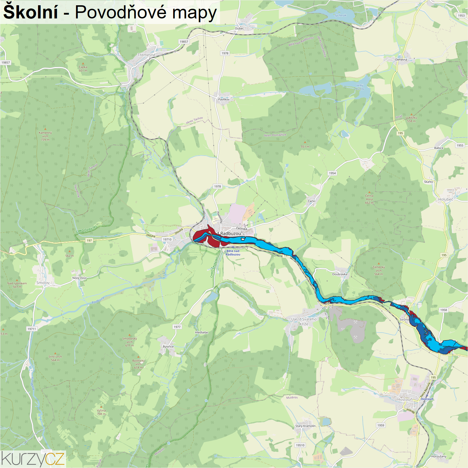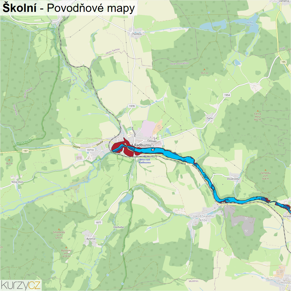 Záplavová mapa ulice Školní