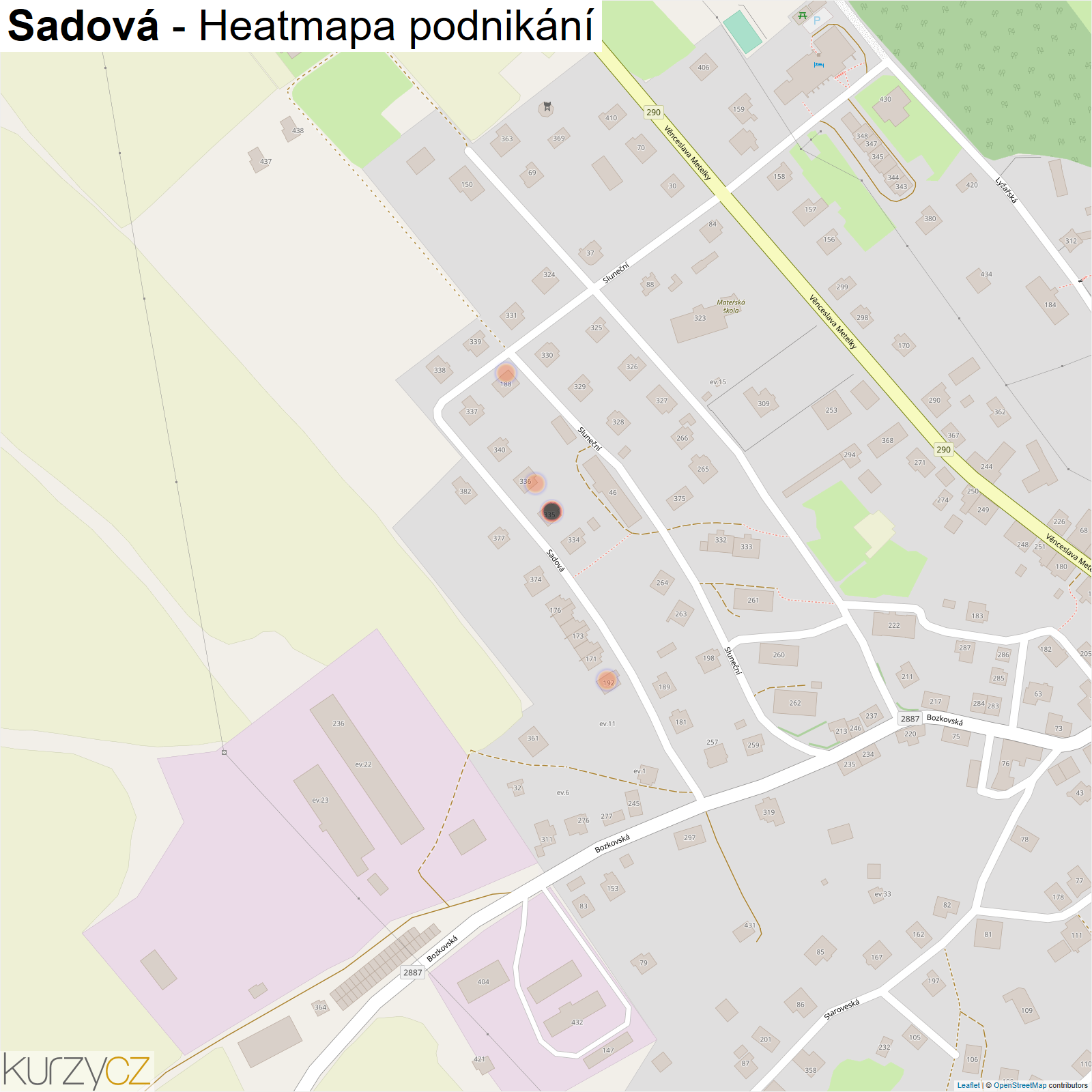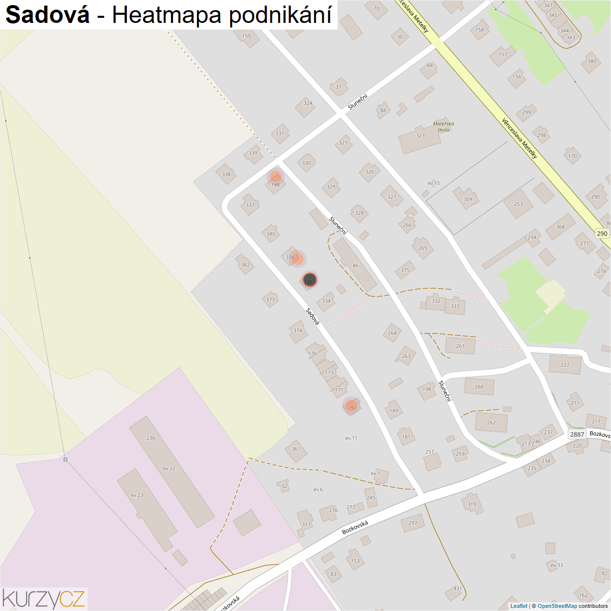 Mapa podnikání ulice Sadová